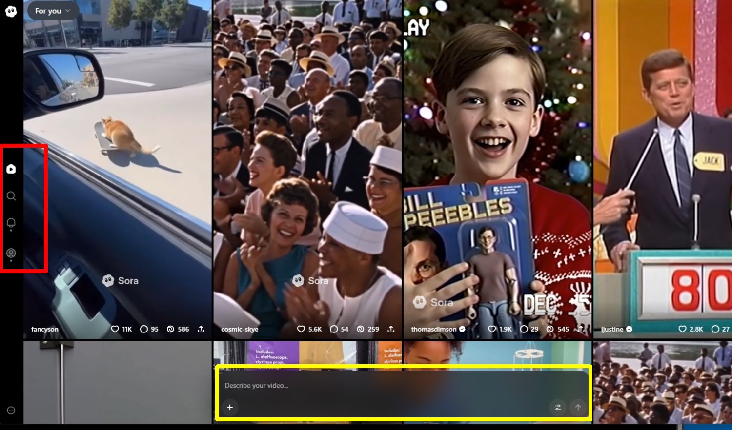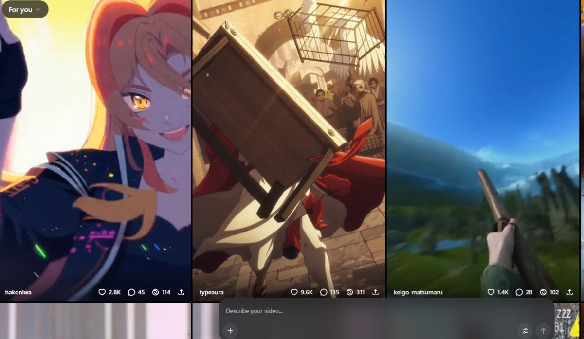 これはSORA2で動画を生成した人たちが投稿している動画が見れます。