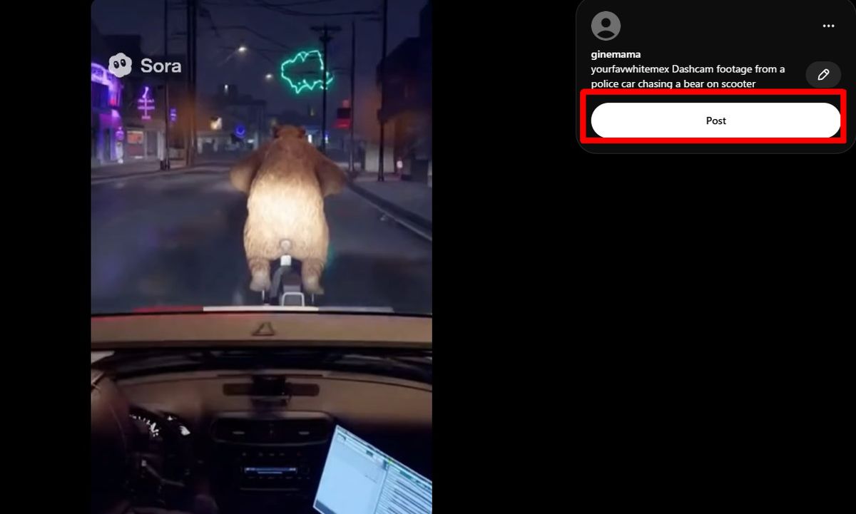自分で生成した動画を開いて「Post」を押すと世界に公開されてしまうため注意しましょう。