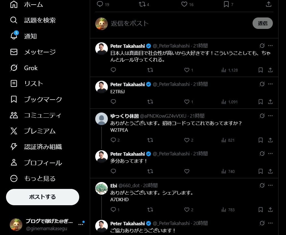 招待コードを手に入れやすい場所はX(旧ツイッター)ですね。